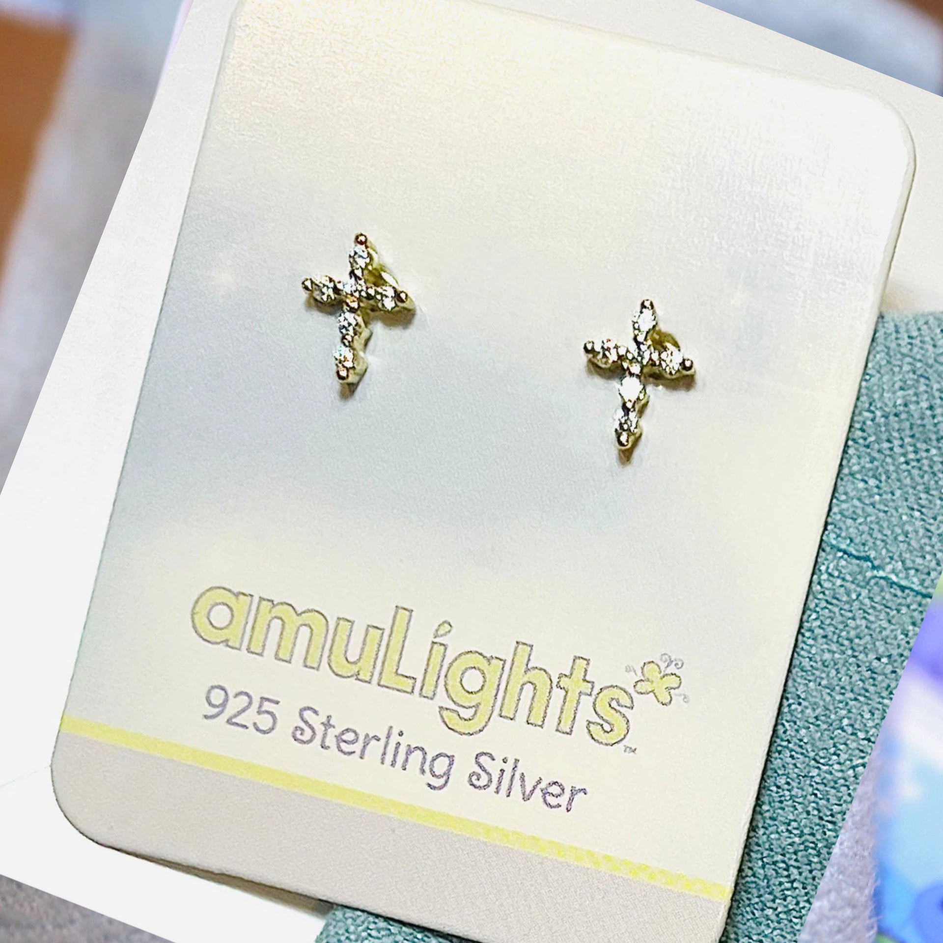925 Sterling Silver Cross 2 Stud Earrings, Rhodium plated with AAA Cubic Zirconia Crystals