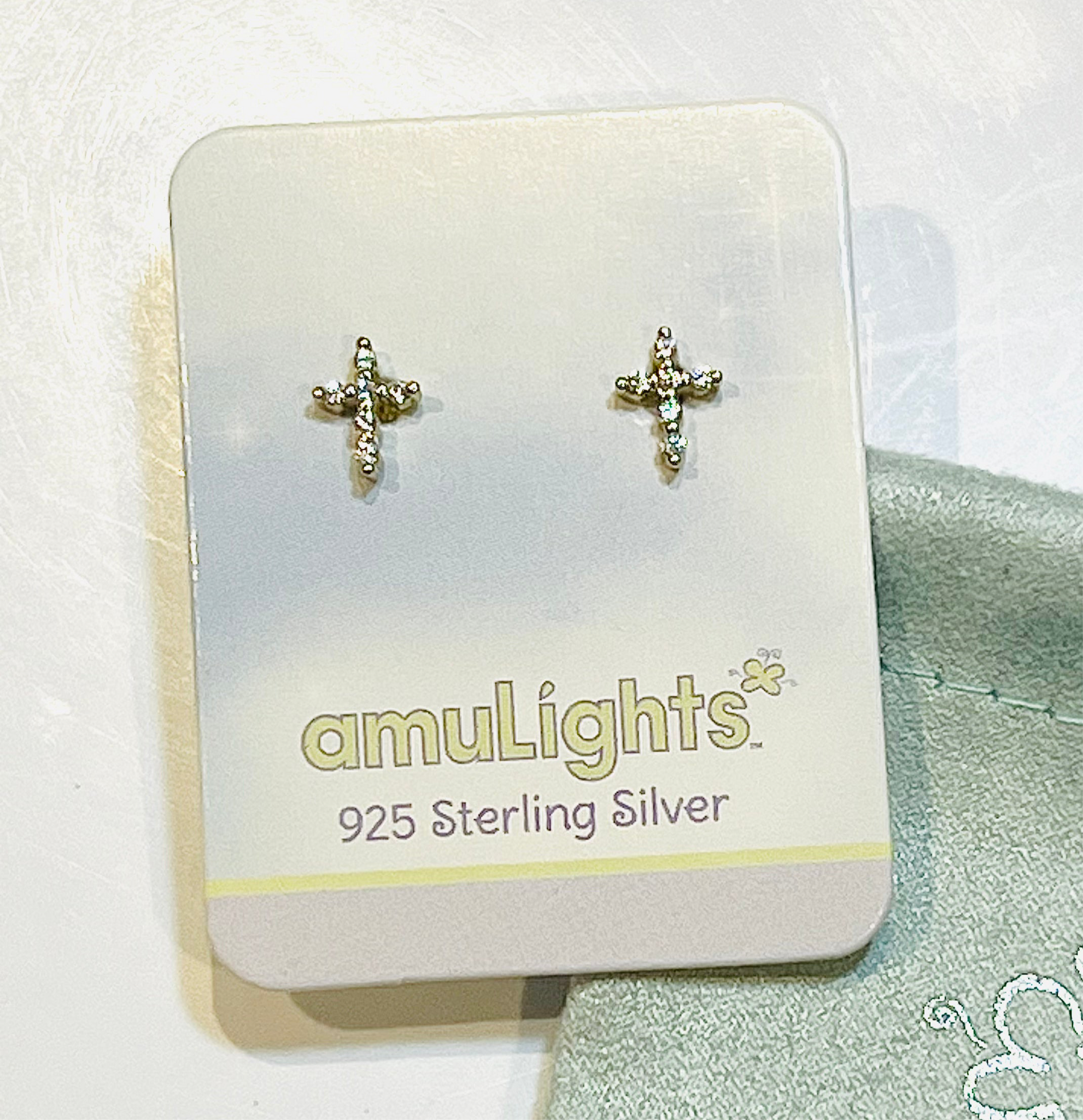 925 Sterling Silver Cross 2 Stud Earrings, 14K Gold plated with AAA Cubic Zirconia Crystals