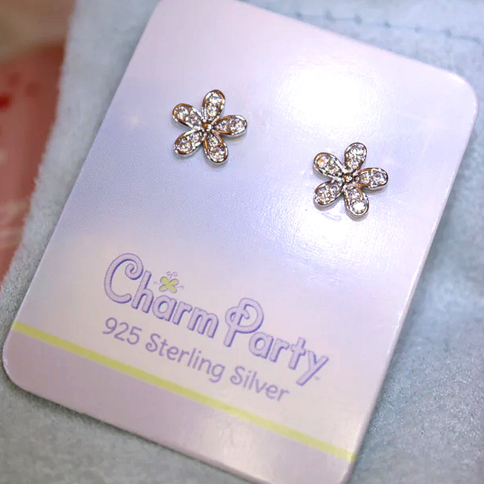 925 Sterling Silver Daisy Stud Earrings, Rhodium plated with AAA Cubic Zirconia Crystals
