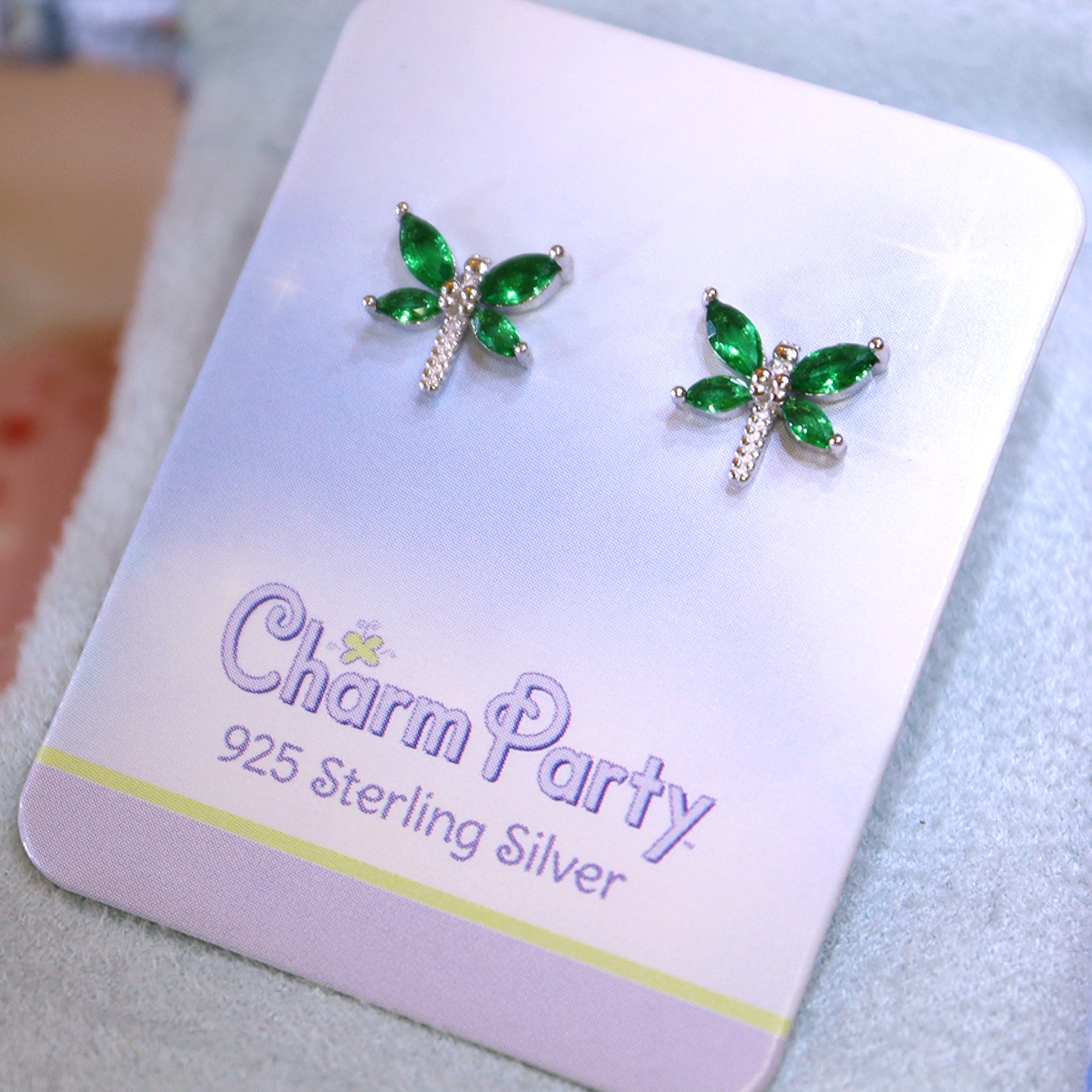 925 Sterling Silver Fancy Dragonfly Earrings Stud Earrings, Rhodium plated with coloured AAA Cubic Zirconia Crystals