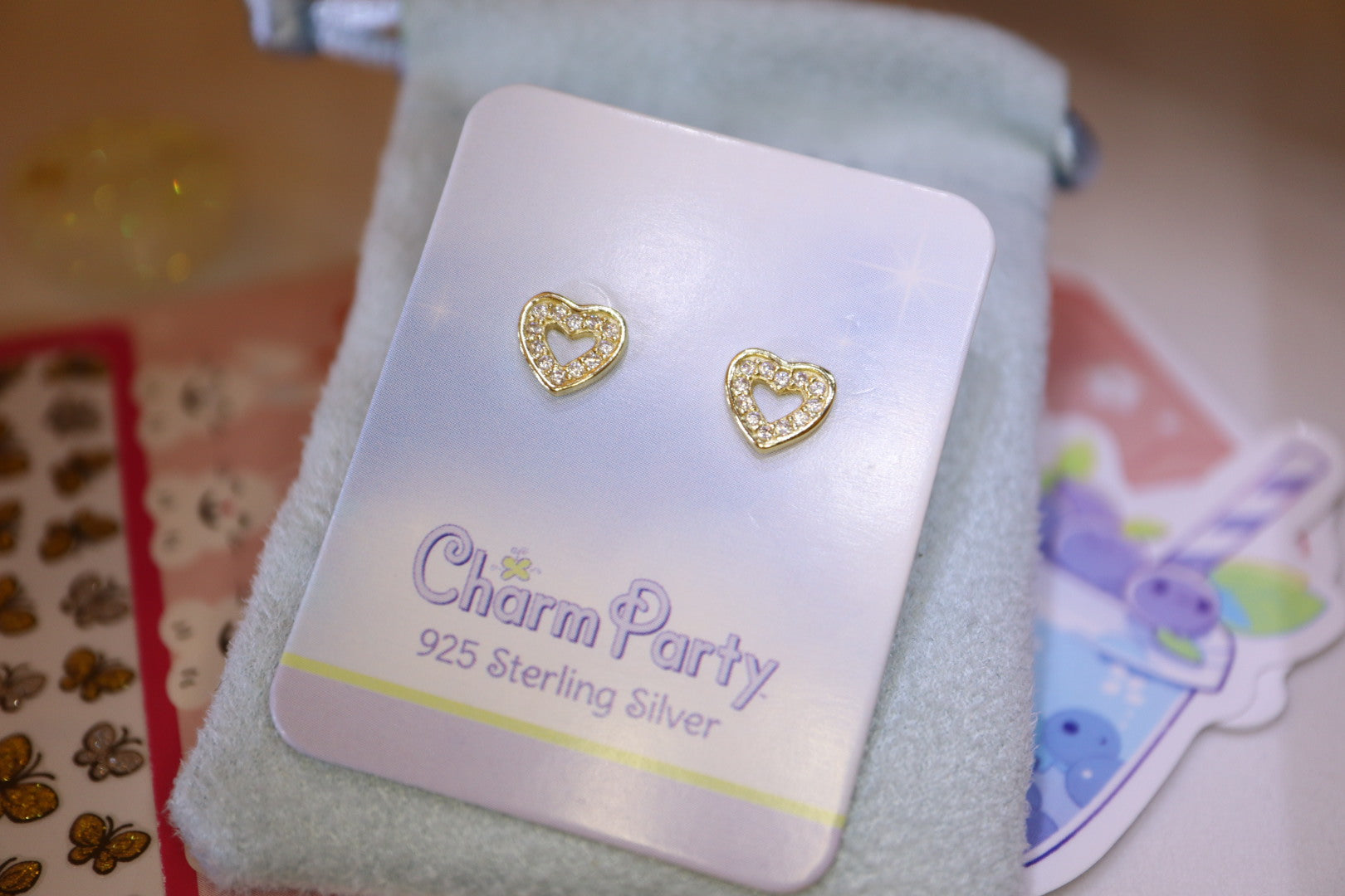 925 Sterling Silver Heart Ring Stud Earrings, 14K Gold plated with AAA Cubic Zirconia Crystals