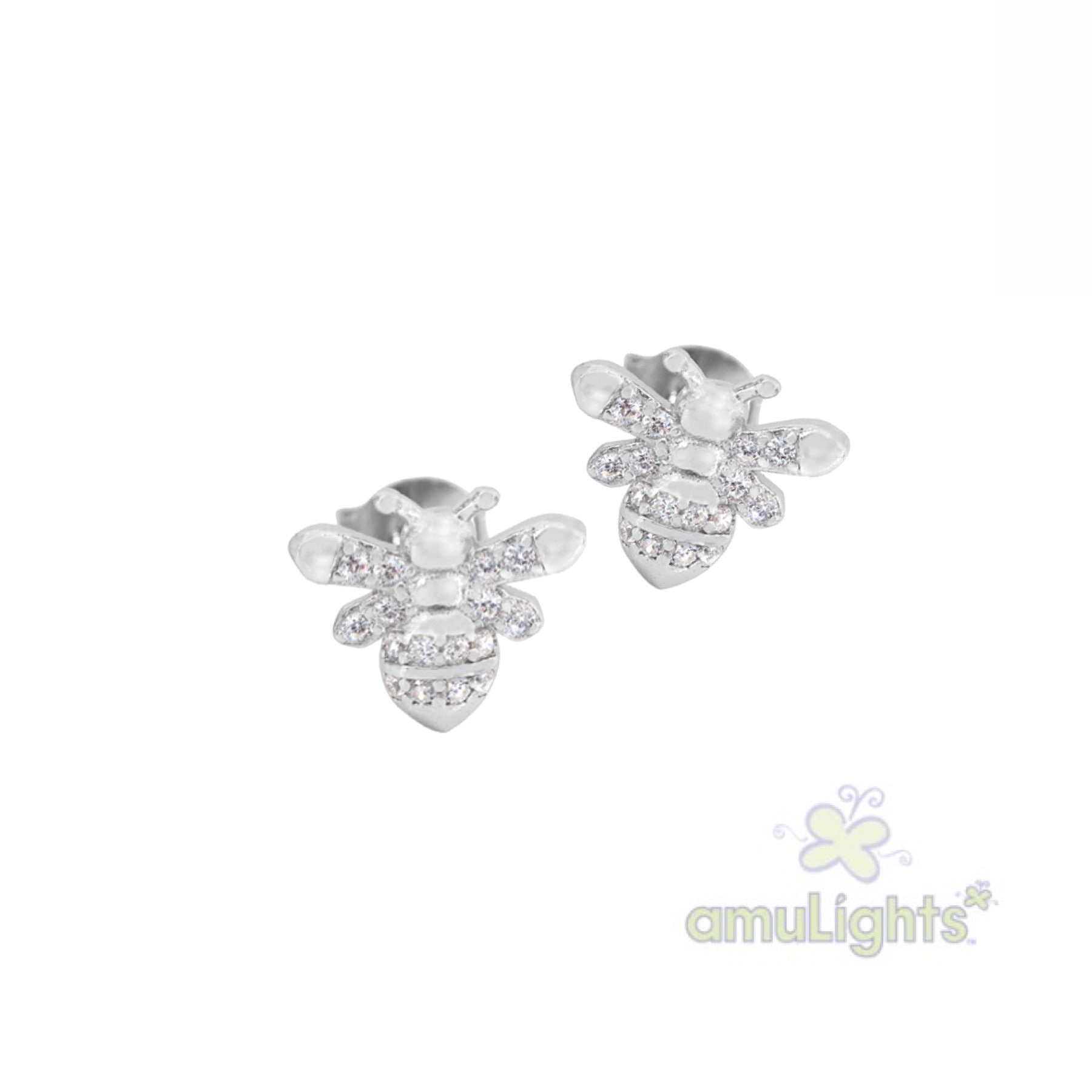 925 Sterling Silver Bumble Bee Stud Earrings, Rhodium plated with AAA Cubic Zirconia Crystals