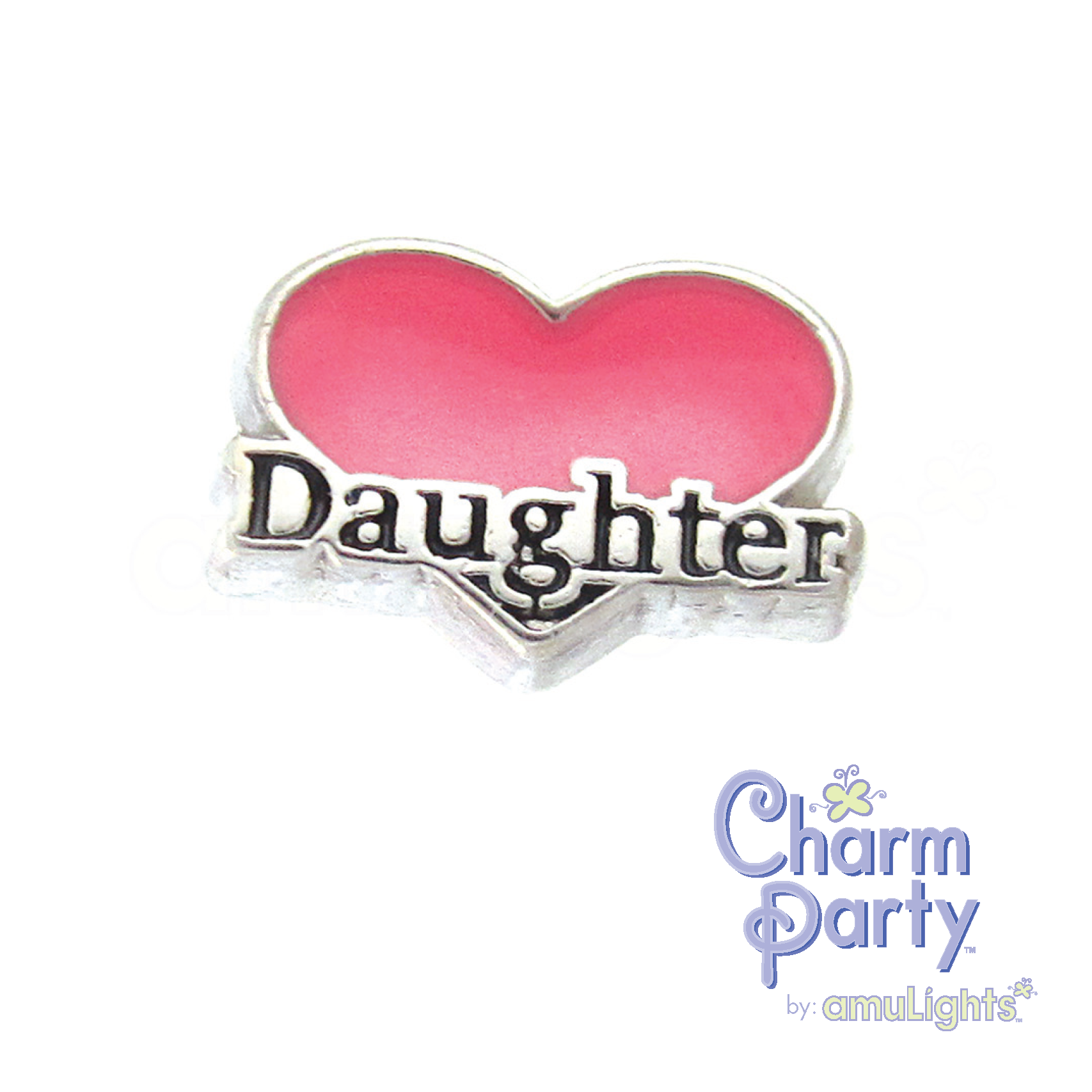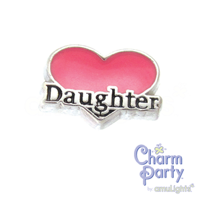 Daughter Pink Heart Charm to place in a locket. Alloy and enamel.