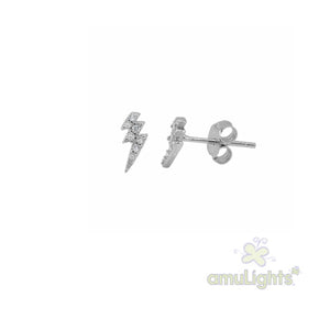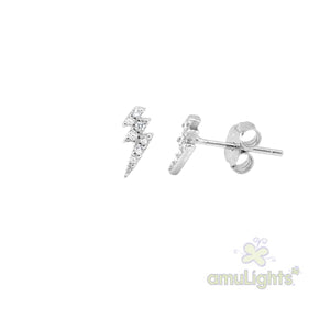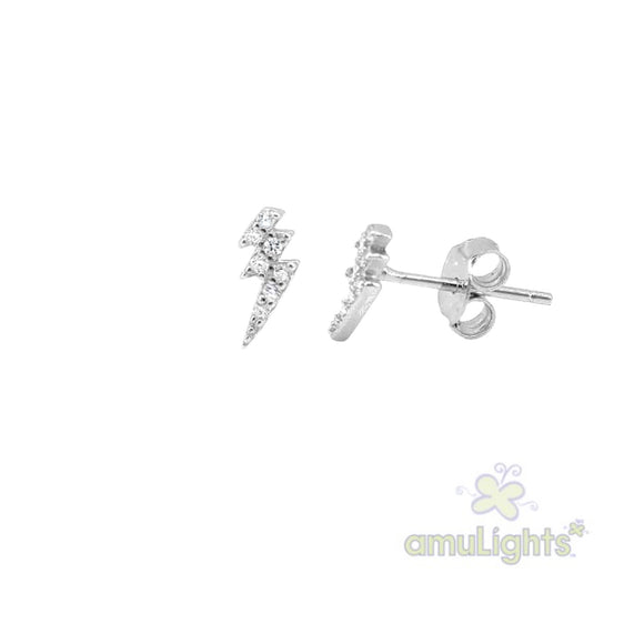 925 Sterling Silver Lightening Bolt Stud Earrings, Rhodium plated with AAA Cubic Zirconia Crystals