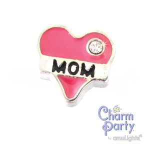 Pink Mom Heart Charm to place in a locket. Alloy and enamel.