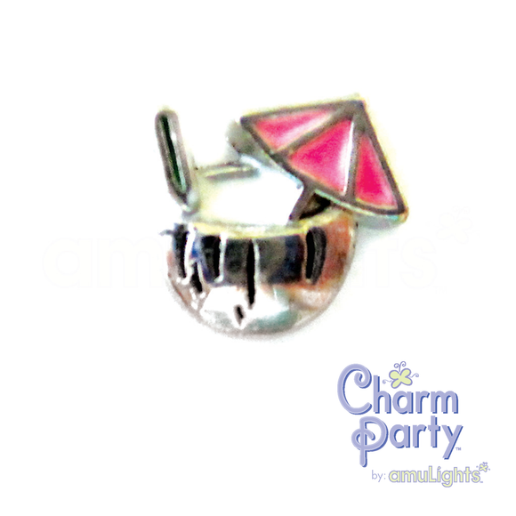 Umbrella Drink Charm to place in a locket. Alloy and enamel.